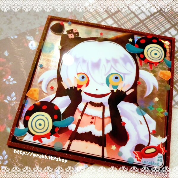 A special holographic board print of Nagisa Momoe from the Madoka Magica Rebellion Movie, with her favorite cheese and sweets ^ ^